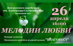 Московский хоровой ансамбль духовной музыки "Благовест" представляет весеннюю песенную программу "Мелодии любви". В исполнении солистов Ансамбля