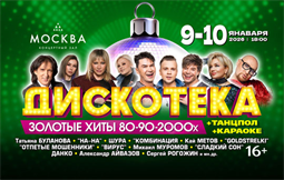 "ДИСКОТЕКА. ЗОЛОТЫЕ ХИТЫ 80-90-2000-х" ТАНЦПОЛ+КАРАОКЕ 9-10 января 2026 в концертном зале "МОСКВА" в 18-00 москвичей и гостей столицы ожидает